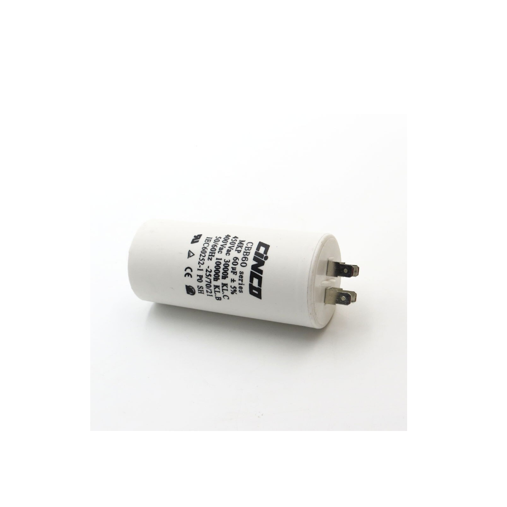 Конденсатор CBB60 450V 60mF. Применяется в качестве пускового или рабочего конденсатора при запуске и работе асинхронных электродвигателей.